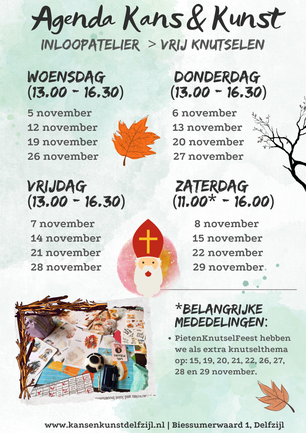- PietenKnutselFeest: knutselen in Sinterklaasthema, met op vrijdag 5 december een PietenKnutselFeestSpecial!